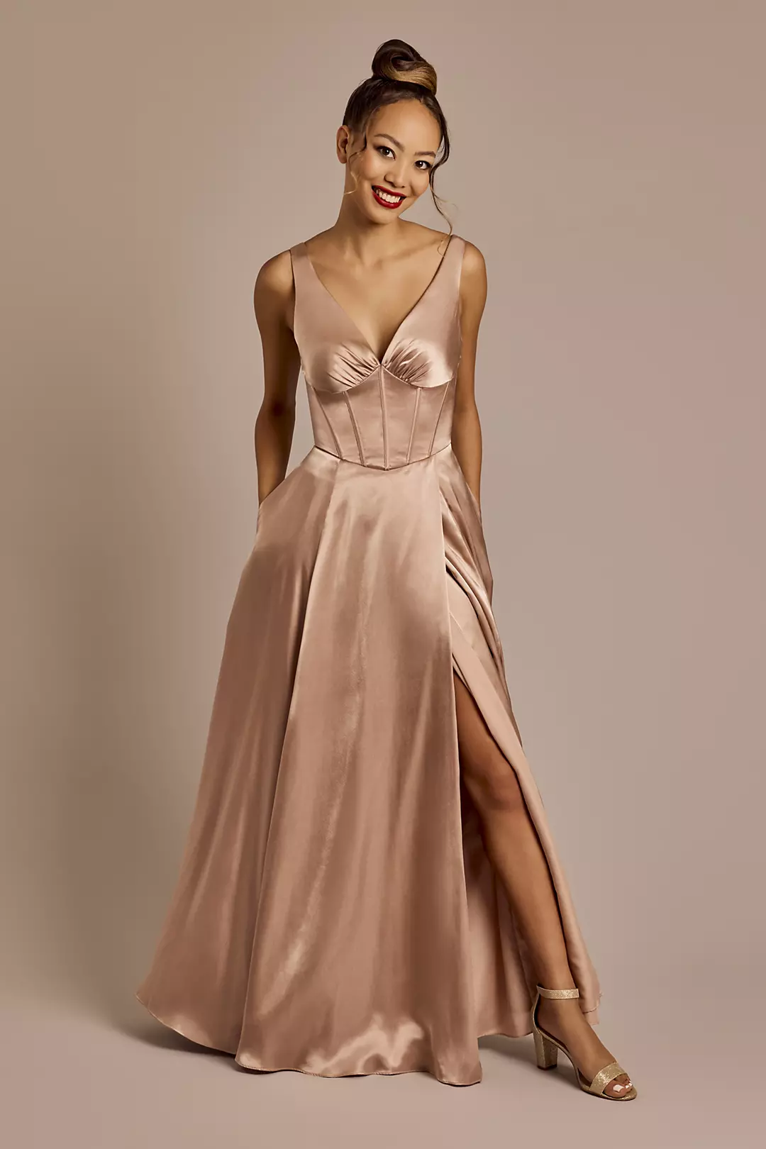 Get a bridesmaid dress that’s unique, statement-making, and beautifully you! The right bridesmaid dress elevates the whole wedding, with beautiful fabrics and show-stopping colors that have everyone in the wedding party looking and feeling their best. When shopping online through David’s Bridal, you can browse our options by silhouette, neckline, sleeve type, fabric, length, and more. Narrow down each style by color – with more than 60 to choose from, the perfect hue is within reach! And when it comes time to place your order, we offer low and free shipping rates throughout the United States.The right bridesmaid dress for any wedding theme